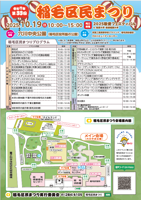 令和7年度は10月19日(日)に「第33回稲毛区民まつり」を開催することとなりました。